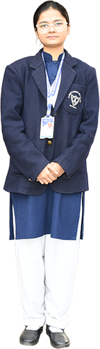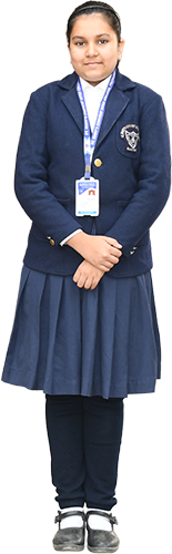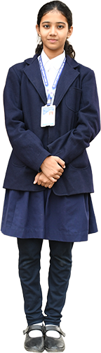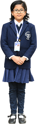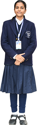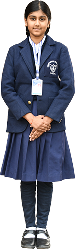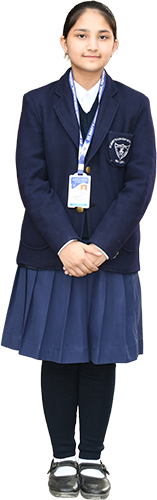 Class 4 to 8 wear navy-blue pleated skirt, white blouse with loose half sleeves, white socks and black shoes.
