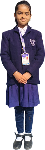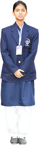 Class 4 to 8 wear navy-blue pleated skirt, white blouse with loose half sleeves, white socks and black shoes.