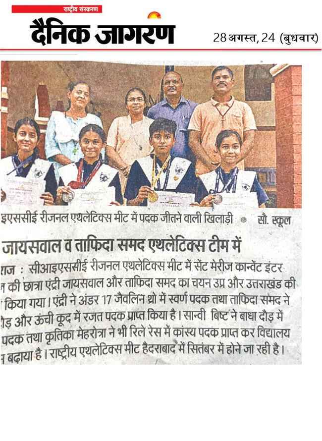 ANDRI JAISWAL and TAFIDA SAMAD students of St. Mary's Convent Inter College, Prayagraj has been selected for National Athletic team.