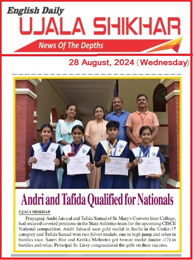 ANDRI JAISWAL and TAFIDA SAMAD students of St. Mary's Convent Inter College, Prayagraj has been selected for National Athletic team.