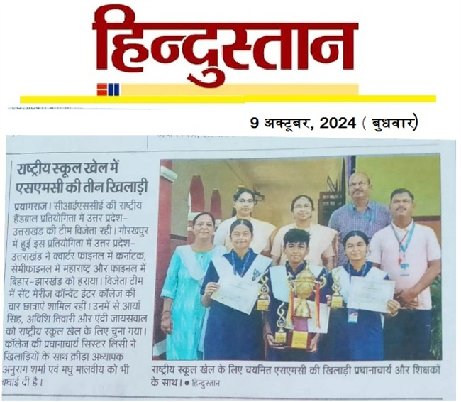 In CISCE National Handball Competition four students of St. Mary's Convent Inter College, Prayagraj have received Gold Medal.