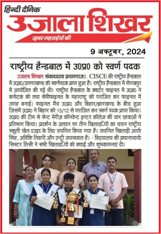 In CISCE National Handball Competition four students of St. Mary's Convent Inter College, Prayagraj have received Gold Medal.