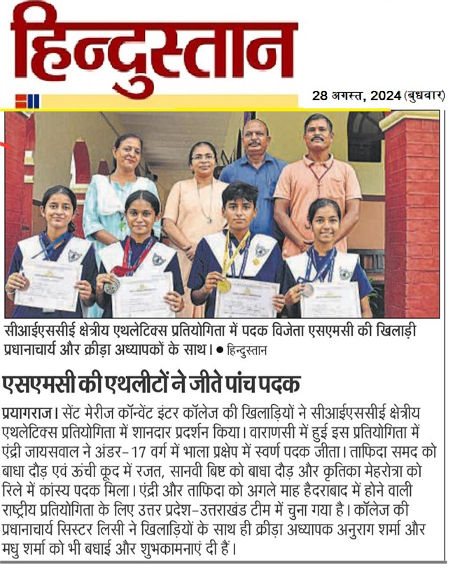 ANDRI JAISWAL and TAFIDA SAMAD students of St. Mary's Convent Inter College, Prayagraj has been selected for National Athletic team.